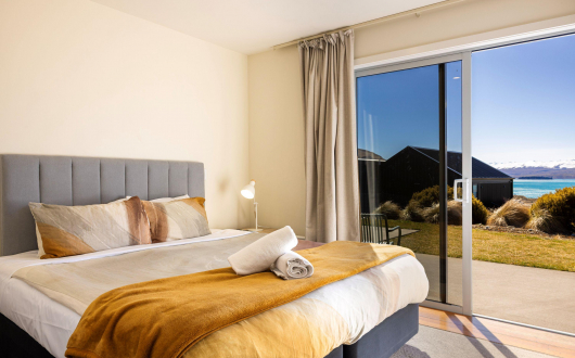 Choose from 5 bedrooms, depending on availability. Each bedroom has an ensuite bathroom, air-conditioning, smart TV and a secure internal & external entrance. Three of the rooms have wonderful views of Lake Tekapo and the surrounding mountains, while the 2 bedrooms at the rear of the lodge offer privacy and pasture views.